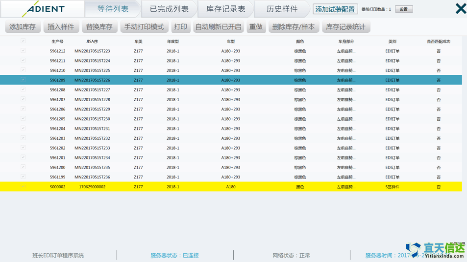 所屬行業:工業軟件開發 服務内容: 管理系統 成果摘要:北京軟件公司 宜天信達-完成奔馳汽車座椅Z177線生産線MES系統設計、開發、安裝、調試與PLC交互,主要功能爲訂單接收、下發、生産防錯處理、機器人掃碼、盒裝驗證等功能。